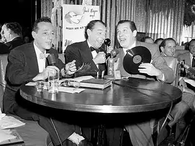 It was also famous for Jack Eigen, a radio personality, who did a live show every night on the WMGM station. (he was succeeded by one of the eventual talk radio giants, Barry Gray.) All sorts of celebrities from the world of politics, sports, and, of course, show business, sometimes even the stars actually working at the Copa, would show up to be interviewed. Jack’s program began at 10 p.m. and ran until 4 a.m. Many people would stay there all evening listening to Jack’s guests and staring (discreetly) at the celebrities and big shots in the Lounge. On a good night, you could see a “Who’s Who” of New York showbiz in that room.